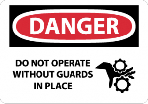 | Feature | Header "DANGER" and legend "DO NOT OPERATE WITHOUT GUARDS IN PLACE" with graphic |