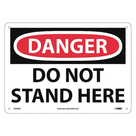 NMC D506AB DANGER - DO NOT STAND HERE Sign - 14 in. x 10 in. Aluminum Danger Signage, Black/White on White/Red