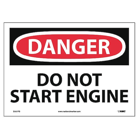NMC D507PB OSHA Sign, Legend "DANGER - DO NOT START ENGINE", 14" Length x 10" Height, Pressure Sensitive Vinyl, Black on White