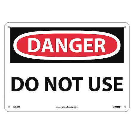 NMC D510AB OSHA Sign, Legend "DANGER - DO NOT USE", 14" Length x 10" Height, Aluminum, Black on White
