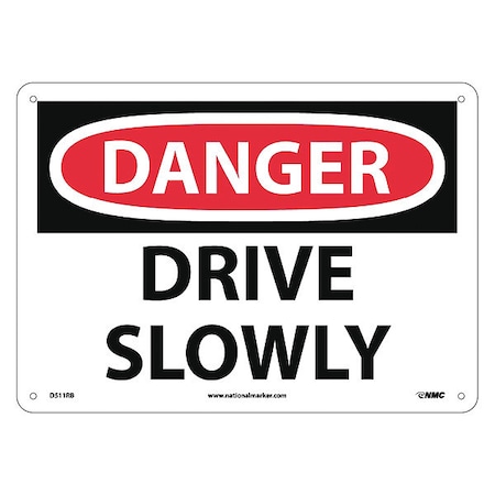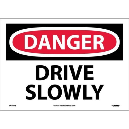 NMC D511RB OSHA Sign, Legend "DANGER - DRIVE SLOWLY", 14" Length x 10" Height, Rigid Plastic, Black on White