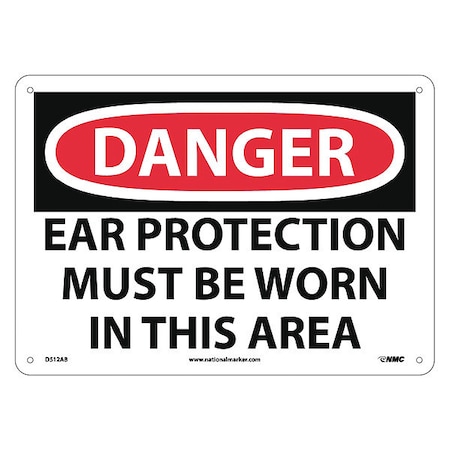 NMC D512AB DANGER - EAR PROTECTION MUST BE WORN IN THIS AREA Sign - 14 in. x 10 in. Aluminum Danger Sign with Black/White Text on White/Red Base