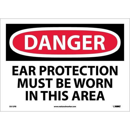 NMC D512PB DANGER - EAR PROTECTION MUST BE WORN IN THIS AREA Sign - 14 in. x 10 in. PS Vinyl Danger Sign with Black/White on White/Red