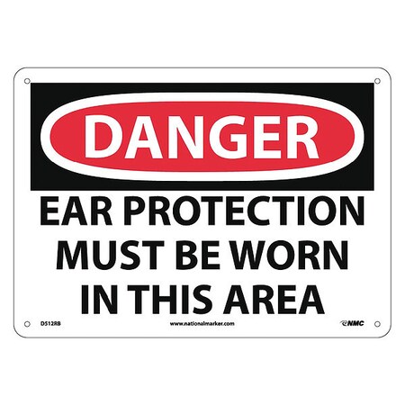 NMC D512RB DANGER - EAR PROTECTION MUST BE WORN IN THIS AREA Sign - 14 in. x 10 in. Rigid Plastic Danger Sign with Black/White on White/Red