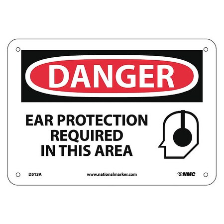 NMC D513A DANGER - EAR PROTECTION REQUIRED IN THIS AREA Sign - 10 in. x 7 in. Aluminum Danger Sign, Black/White Text on White/Red Base