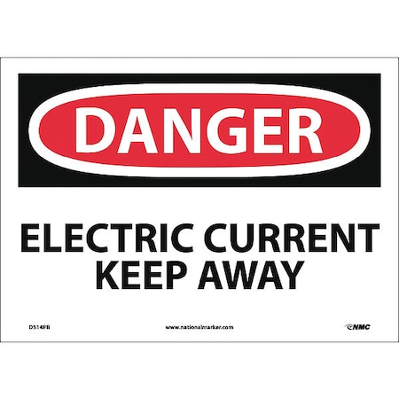 NMC D514PB OSHA Sign, Legend "DANGER - ELECTRIC CURRENT KEEP AWAY", 14" Length x 10" Height, Pressure Sensitive Vinyl, Black/Red on White, Black on White