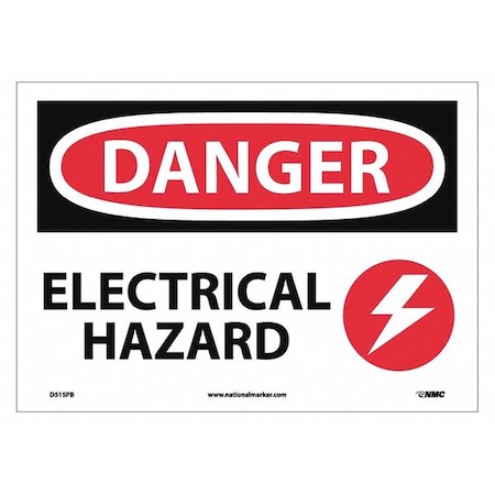 NMC D515PB OSHA Sign, Legend "DANGER - ELECTRICAL HAZARD" with Graphic, 14" Length x 10" Height, Pressure Sensitive Vinyl, Black on White