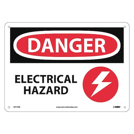 NMC D515RB OSHA Sign, Legend "DANGER - ELECTRICAL HAZARD" with Graphic, 14" Length x 10" Height, Rigid Plastic, Black on White