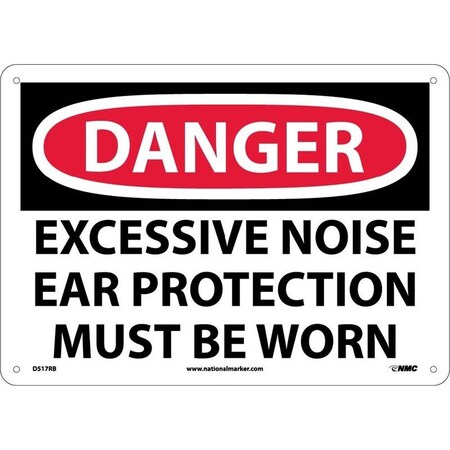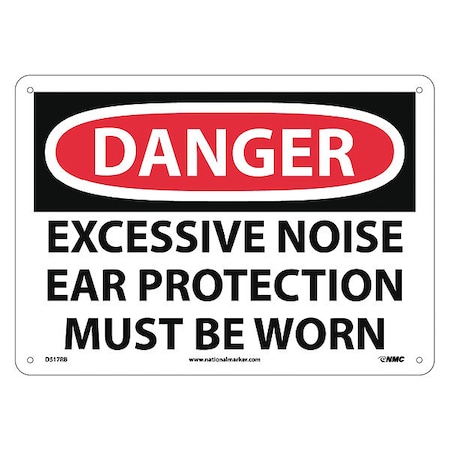 NMC D517RB DANGER - EXCESSIVE NOISE - EAR PROTECTION MUST BE WORN - 14 in. x 10 in. Rigid Plastic Danger Sign with White/Black Text on Red/White Base