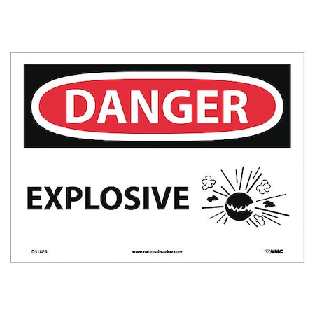 NMC D518PB OSHA Sign, Legend "DANGER - EXPLOSIVE" with Graphic, 14" Length x 10" Height, Pressure Sensitive Vinyl, Black/Red on White