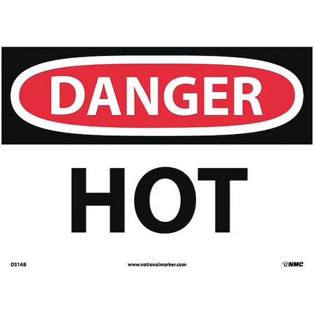 NMC D51AB OSHA Sign, Legend "DANGER - HOT", 14" Length x 10" Height, 0.040 Aluminum, Black/Red on White
