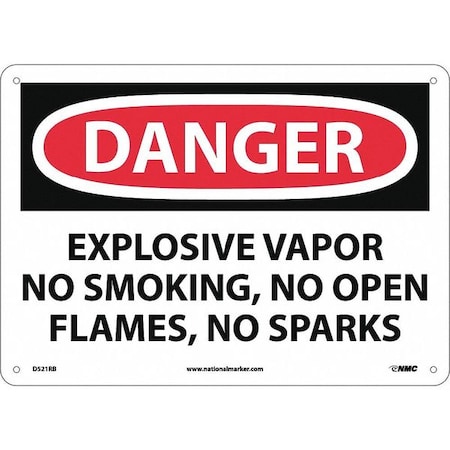 NMC D521RB OSHA Sign, Legend "DANGER - EXPLOSIVE VAPOR NO SMOKING NO OPEN FLAMES NO SPARKS", 14" Length x 10" Height, Rigid Plastic, Black/Red on White