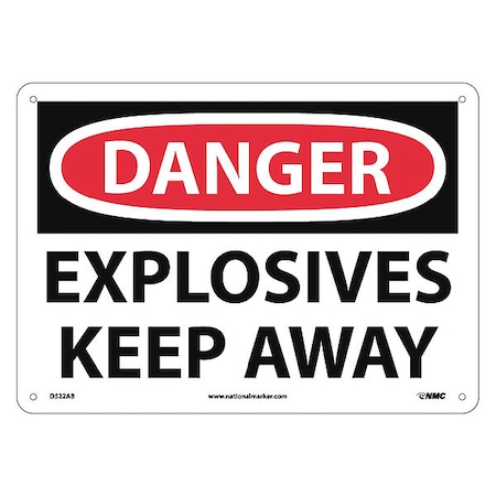 NMC D522AB OSHA Sign, Legend "DANGER - EXPLOSIVES KEEP AWAY", 14" Length x 10" Height, Aluminum, Black/Red on White