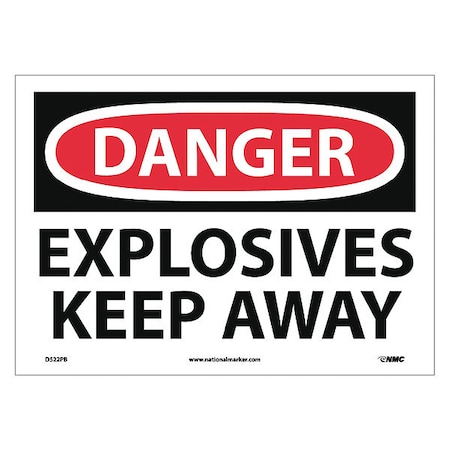 NMC D522PB OSHA Sign, Legend "DANGER - EXPLOSIVES KEEP AWAY", 14" Length x 10" Height, Pressure Sensitive Vinyl, Black/Red on White