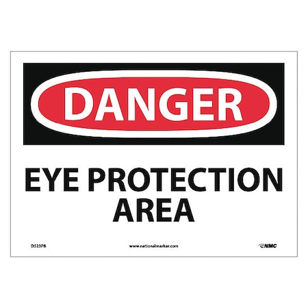 NMC D523PB OSHA Sign, Legend "DANGER - EYE PROTECTION AREA", 14" Length x 10" Height, Pressure Sensitive Vinyl, Black/Red on White