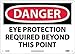 - Clear Visibility: the legend “DANGER - EYE PROTECTION REQUIRED BEYOND THIS POINT” is printed in clear, bold font. This ensures easy visibility and clear legibility of the message
