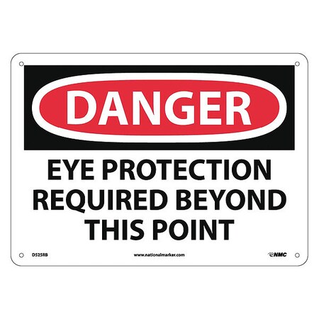 NMC D525RB DANGER - EYE PROTECTION REQUIRED BEYOND THIS POINT – 14 in. x 10 in. Rigid Plastic Danger Sign with White/Black Text on Red/White Base