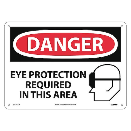 NMC D526AB DANGER - EYE PROTECTION REQUIRED IN THIS AREA – 14 in. x 10 in. Aluminum Danger Sign with Graphic, White/Black Text on Red/White Base