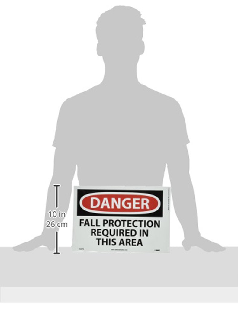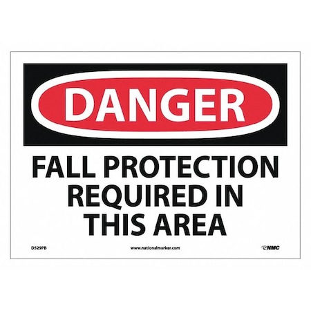 NMC D529PB DANGER - FALL PROTECTION REQUIRED IN THIS AREA - 14 in. x 10 in. PS Vinyl Danger Sign with White/Black Text on Red/White Base