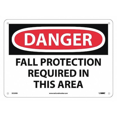 NMC D529RB DANGER - FALL PROTECTION REQUIRED IN THIS AREA - 14 in. x 10 in. Rigid Plastic Danger Sign with White/Black Text on Red/White Base