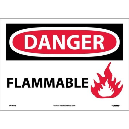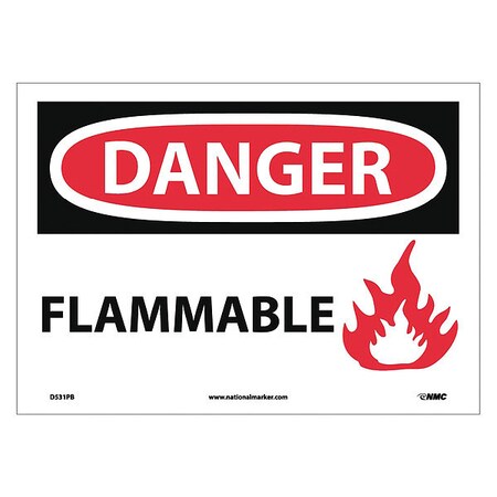 NMC D531PB OSHA Sign, Legend "DANGER - FLAMMABLE" with Graphic, 14" Length x 10" Height, Pressure Sensitive Vinyl, Black/Red on White