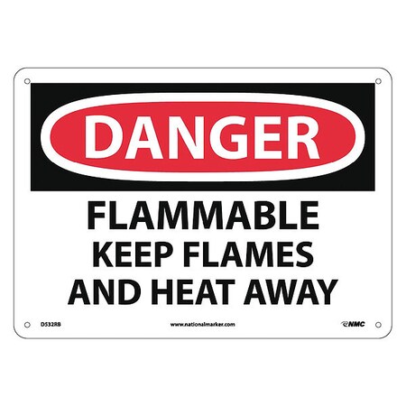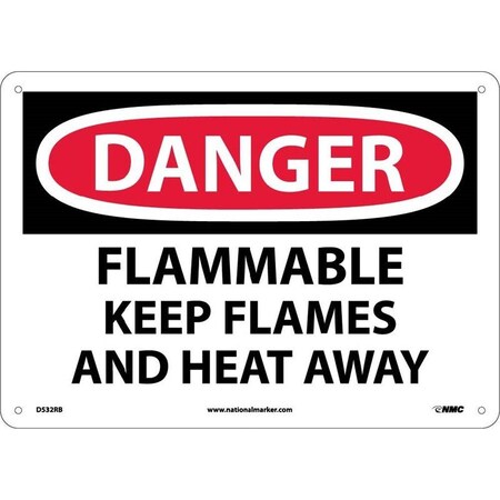 NMC D532RB OSHA Sign, Legend "DANGER - FLAMMABLE KEEP FLAMES AND HEAT AWAY", 14" Length x 10" Height, Rigid Plastic, Black/Red on White