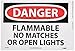 - Header "DANGER" and Legend "FLAMMABLE NO MATCHES OR OPEN LIGHTS"