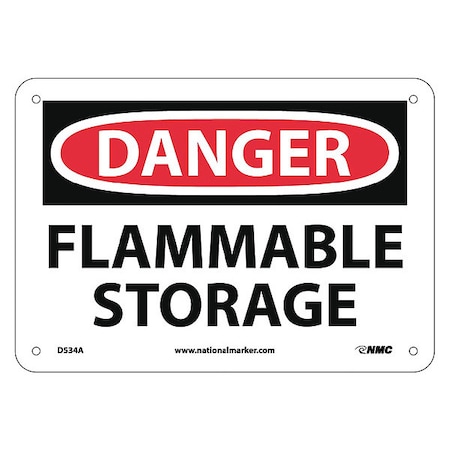 NMC D534A OSHA Sign, Legend "DANGER - FLAMMABLE STORAGE", 10" Length x 7" Height, Aluminum, Black/Red on White