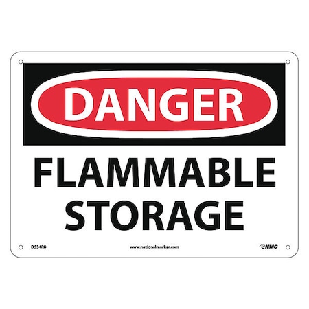 NMC D534RB OSHA Sign, Legend "DANGER - FLAMMABLE STORAGE", 14" Length x 10" Height, Rigid Plastic, Black/Red on White