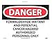 - Header "DANGER" and Legend "FORMALDEHYDE IRRITANT AND POTENTIAL CANCER HAZARD AUTHORIZED PERSONNEL ONLY"