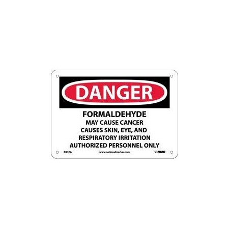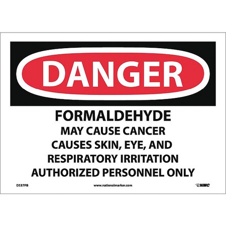 NMC D537PB OSHA Sign, Legend "DANGER - FORMALDEHYDE IRRITANT AND POTENTIAL CANCER HAZARD AUTHORIZED PERSONNEL ONLY", 14" Length x 10" Height, Pressure Sensitive Vinyl, Black/Red on White