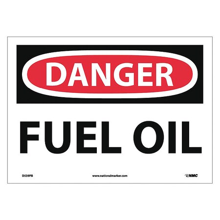 NMC D539PB OSHA Sign, Legend "DANGER - FUEL OIL", 14" Length x 10" Height, Pressure Sensitive Vinyl, Black/Red on White