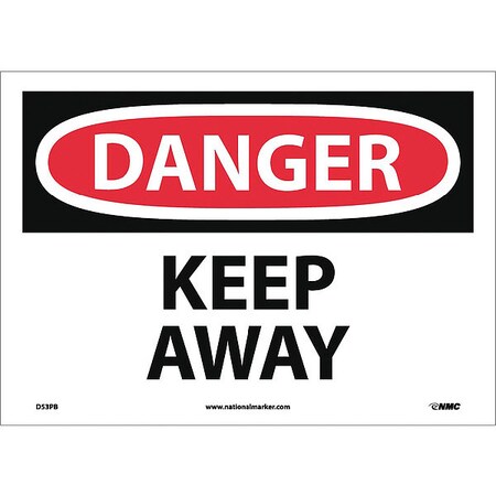 NMC D53PB DANGER - KEEP AWAY Sign - 14 in. x 10 in. PS Vinyl Danger Sign, Black/White Text on White/Red Base