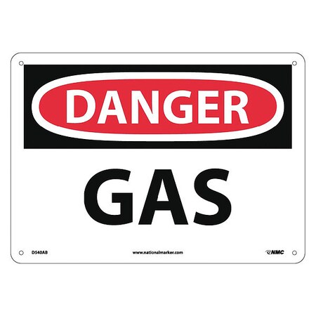 NMC D540AB OSHA Sign, Legend "DANGER - GAS", 14" Length x 10" Height, Aluminum, Black/Red on White