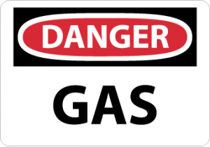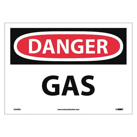 NMC D540PB OSHA Sign, Legend "DANGER - GAS", 14" Length x 10" Height, Pressure Sensitive Vinyl, Black/Red on White