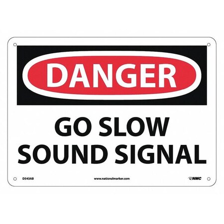 NMC D543AB OSHA Sign, Legend "DANGER - GO SLOW SOUND SIGNAL", 14" Length x 10" Height, Aluminum, Black/Red on White