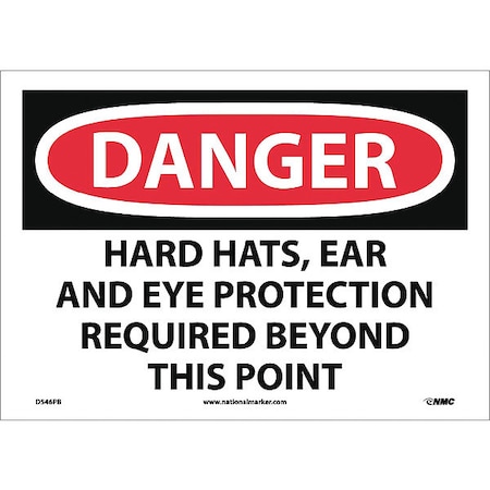 NMC D546PB OSHA Sign, Legend "DANGER - HARD HATS, EAR AND EYE PROTECTION REQUIRED BEYOND THIS POINT", 14" Length x 10" Height, Pressure Sensitive Vinyl, Black/Red on White