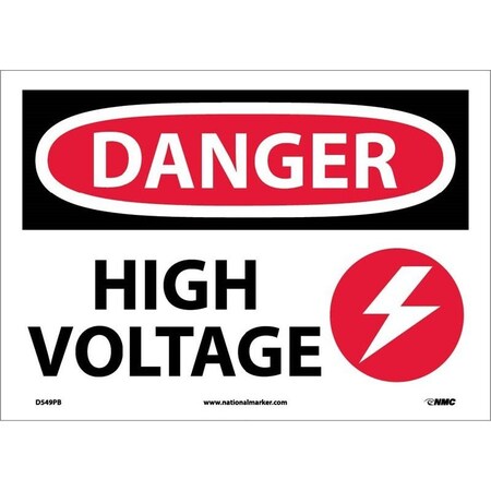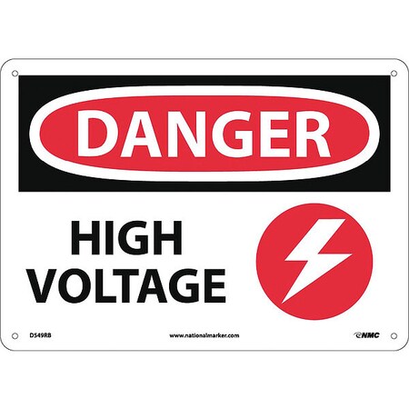 NMC D549RB OSHA Sign, Legend "DANGER - HIGH VOLTAGE" with Electrical2 Graphic, 14" Length x 10" Height, Rigid Plastic, Black/Red on White