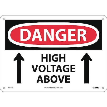 NMC D550RB OSHA Sign, Legend "DANGER - HIGH VOLTAGE ABOVE" with Up Arrow Graphic, 14" Length x 10" Height, Rigid Plastic, Black/Red on White