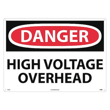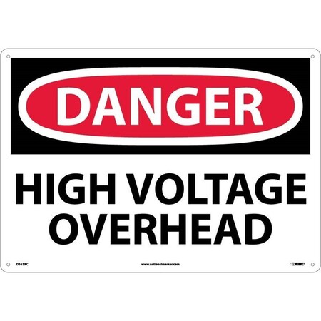 NMC D553AD OSHA Sign, Legend "DANGER - HIGH VOLTAGE OVERHEAD", 28" Length x 20" Height, 0.040 Aluminum, Black/Red on White