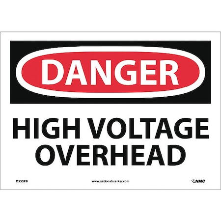 NMC D553PB OSHA Sign, Legend "DANGER - HIGH VOLTAGE OVERHEAD", 14" Length x 10" Height, Pressure Sensitive Adhesive Vinyl, Black/Red on White