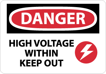 - Header "DANGER" and Legend "HIGH VOLTAGE WITHIN KEEP OUT" with graphic