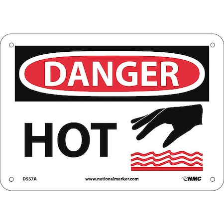NMC D557A OSHA Sign, Legend "DANGER - HOT" with Graphic, 10" Length x 7" Height, 0.040 Aluminum, Black/Red on White