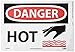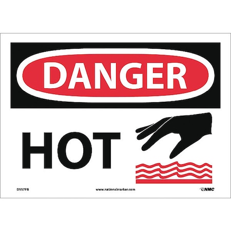 NMC D557PB OSHA Sign, Legend "DANGER - HOT" with Graphic, 14" Length x 10" Height, Pressure Sensitive Adhesive Vinyl, Black/Red on White