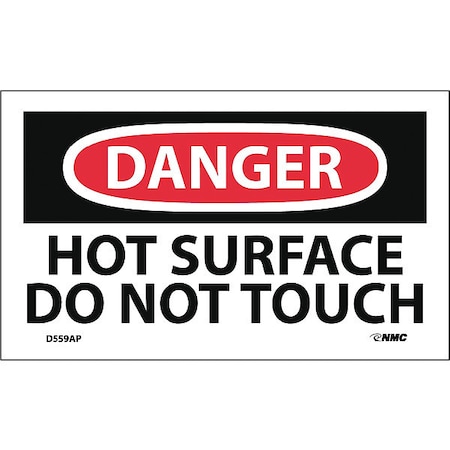 NMC D559AP OSHA Sign, Legend "DANGER - HOT SURFACE DO NOT TOUCH", 5" Length x 3" Height, Pressure Sensitive Adhesive Vinyl, Black/Red on White (Pack of 5)