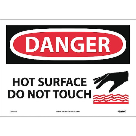 NMC D560PB OSHA Sign, Legend "DANGER - HOT SURFACE DO NOT TOUCH" with Graphic, 14" Length x 10" Height, Pressure Sensitive Adhesive Vinyl, Black/Red on White