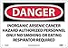 - Header "DANGER" and Legend "INORGANIC ARSENIC CANCER HAZARD AUTHORIZED PERSONNEL ONLY NO SMOKING OR EATING RESPIRATOR REQUIRED"