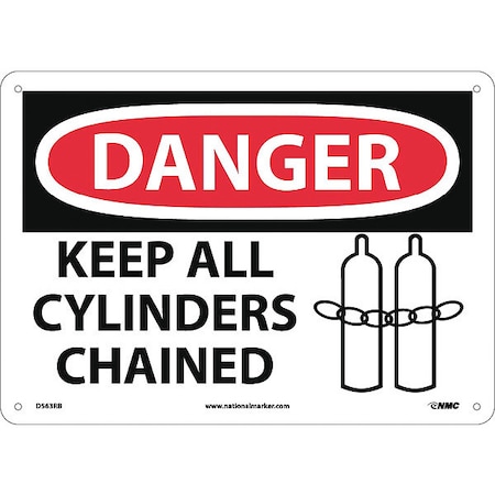 NMC D563RB OSHA Sign, Legend "DANGER - KEEP ALL CYLINDERS CHAINED" with Graphic, 14" Length x 10" Height, Rigid Plastic, Black/Red on White