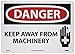- Header "DANGER" and Legend "KEEP AWAY FROM MACHINERY" with graphic