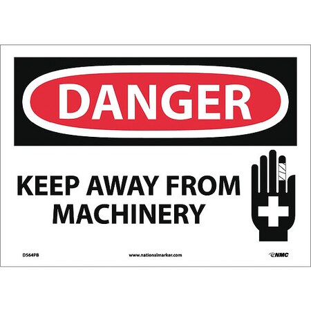 NMC D564PB OSHA Sign, Legend "DANGER - KEEP AWAY FROM MACHINERY" with Graphic, 14" Length x 10" Height, Pressure Sensitive Adhesive Vinyl, Black/Red on White